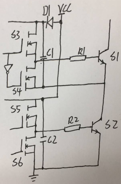 当HIN为低电平时,S4开通,S3断开,Cgs1经 R1、S4迅速释放,S1关断;