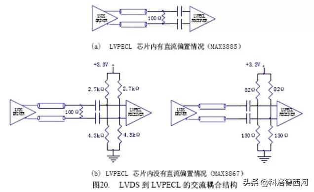 LVDS 到LVPECL的交流耦合结构较为简单,图20 给出了两个例子