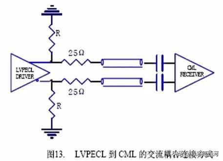 2、不管怎样,作为特殊情况,在这里给出了它们间互连的交流解决方案,需注意CML 的输出 信号摆幅应落在LVDS 的有效工作范围内。